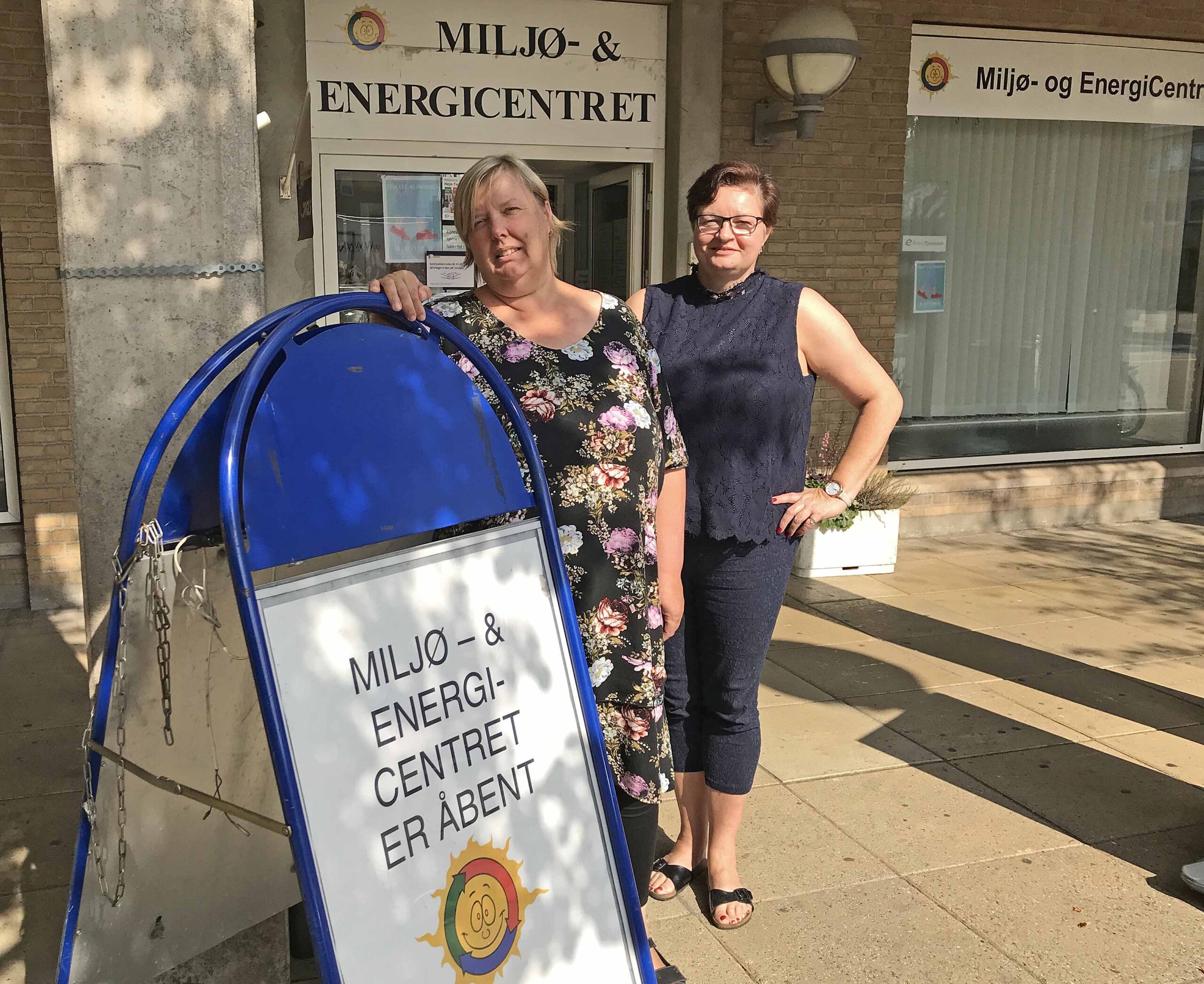 (Foto: Ann Vikkelsø (t.v.) og Tina Faber foran Miljø- & EnergiCentret, som nu også er hjemsted for EnergiTjenesten Øst.)