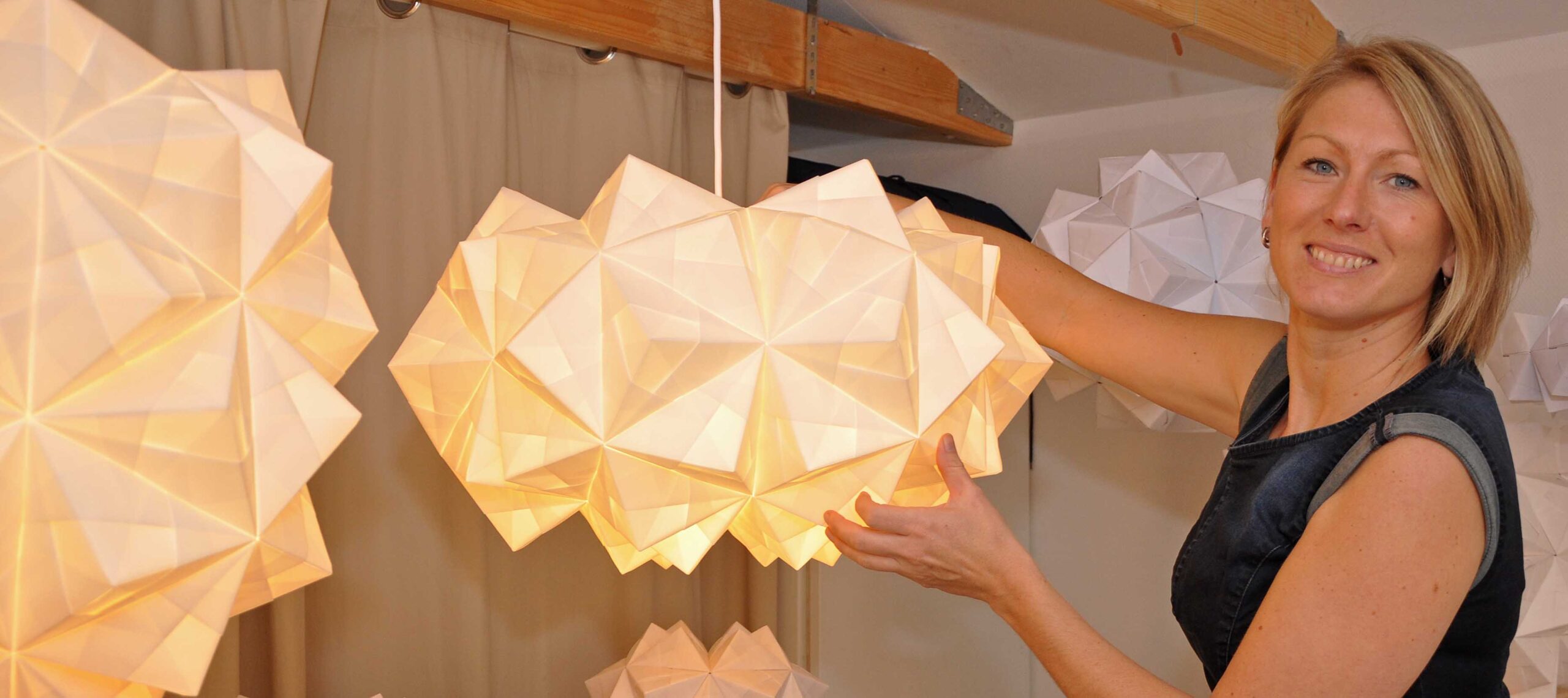 Sonobe er navnet på en japansk metode til at folde papir på. Sonobe Light er navnet på en ny virksomhed i Høje-Taastrup. Hjemme i sit papirværksted på Poppel Alle sidder Charlotte Brandt og limer de mange sonober – foldet af specielt pergament – sammen til papirlamper.